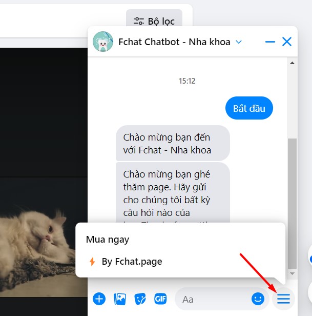 Menu nằm ở góc phải bên dưới trong hội thoại tin nhắn ở Messenger của khách hàng.