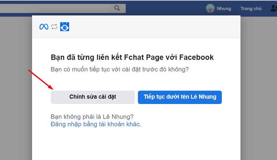 Màn hình sẽ chuyển sang Facebook và hiển thị pop up như hình ảnh bên dưới, bạn chọn Chỉnh sửa Cài đặt.