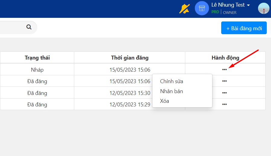 Các tiêu đề bài đăng sẽ có hành động Chỉnh sửa, nhân bản, xóa để bạn dễ dàng điều chỉnh cho tiêu đề của mình.