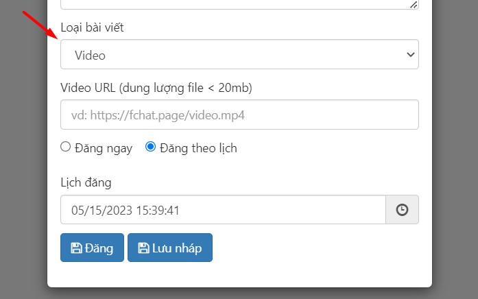 Thao tác tương tự Hình ảnh, Tại "Loại bài viết" bạn chọn Video
